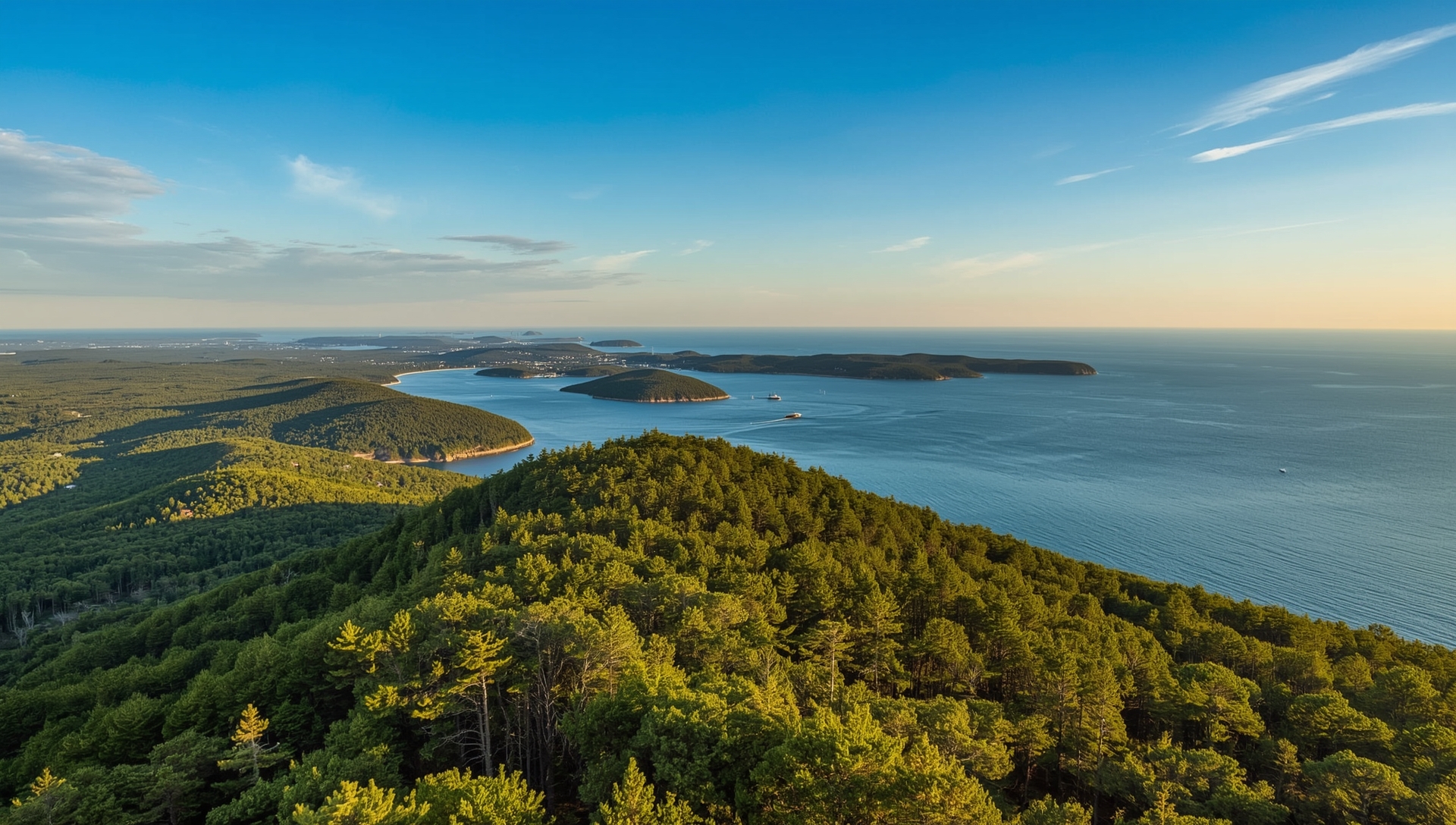 For a shorter but equally spectacular drive, head up the Cadillac Summit Road — one of the most unforgettable routes in Acadia. The road winds 3.5 miles from the base to the summit of Cadillac Mountain, climbing through spruce forest and over open granite ridges. As you rise above the treeline, sweeping views of Frenchman Bay and the Porcupine Islands open up on the horizon, glowing in the morning or evening light.
