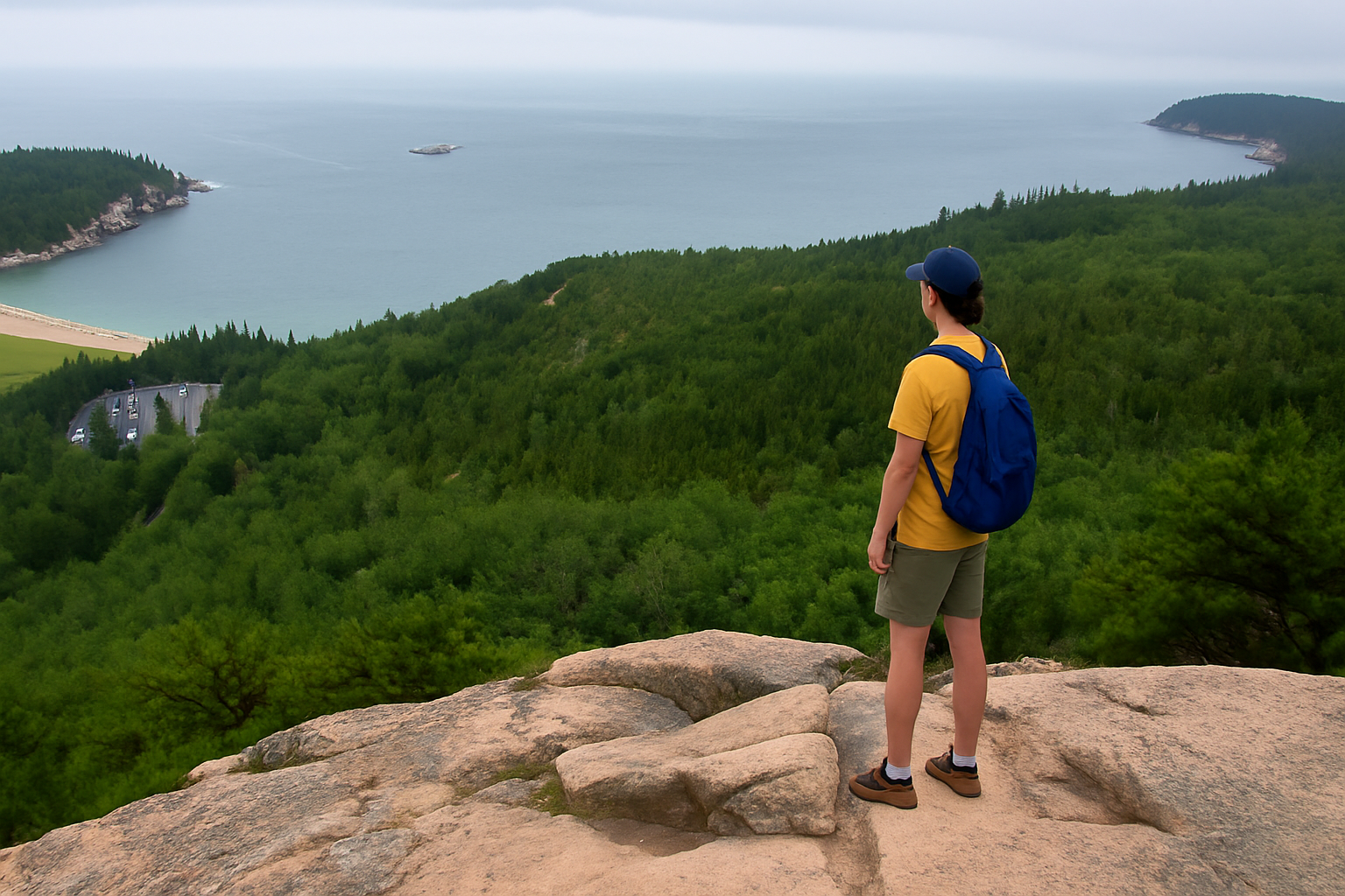 Packing layers is another key to enjoying Acadia National Park in summer. The temperature can swing from the upper 70s°F (mid-20s°C) in the afternoon to the cool 50s°F (10–12°C) after sunset. Mornings on the mountaintops can be breezy, and evenings along the coast often call for a light jacket or sweater. A brimmed hat and sunscreen are also must-haves — even with the cool air, the sun reflects off the ocean and granite surfaces, catching many visitors off guard.