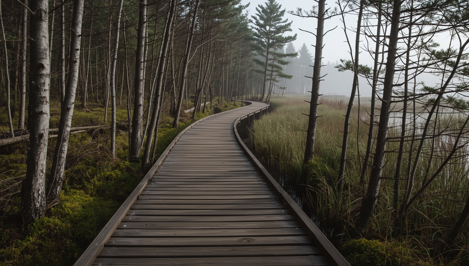 As you walk, take advantage of the wooden boardwalks that protect the wetland floor. They keep your feet dry and prevent erosion, helping preserve fragile ecosystems. Stop midway where the trail opens to the marsh; you’ll often see mirrored reflections of the sky and treetops. If you’re quiet, you may catch the splash of a frog or the glide of a heron crossing the water.
