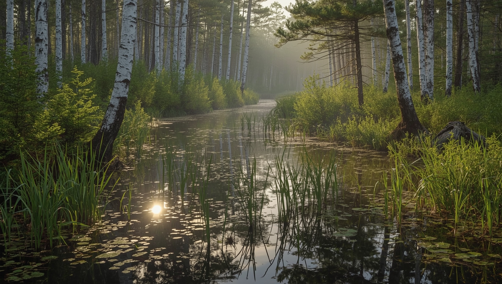 • Blends forest shade and open marsh scenery with subtle seasonal change.
