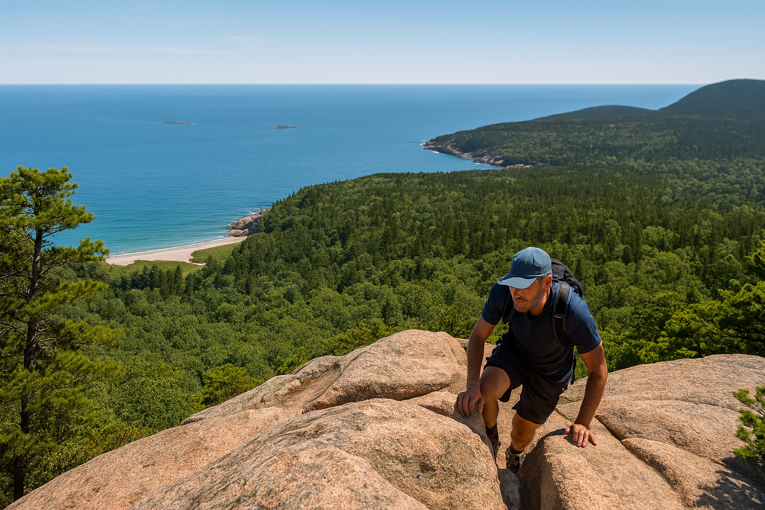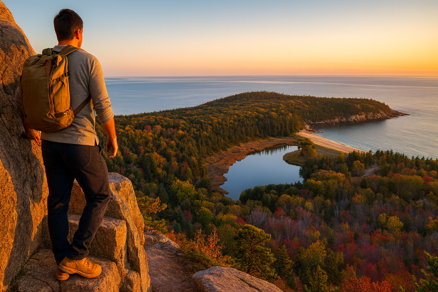 Photographers often describe sunrise from this vantage as pure magic. Before dawn, the world turns violet and still, then suddenly the first sunlight spills across the bay, painting the waves in molten gold. At midday, the light sharpens, throwing every ridge and ripple into relief. By late afternoon, long shadows stretch across the granite, and the entire coastline glows amber before fading into dusk. Whether you ascended via the thrilling Beehive Trail Acadia or chose the calmer Bowl Trail Acadia National Park loop, reaching this summit feels like a celebration — a quiet triumph earned through balance, focus, and a bit of courage.