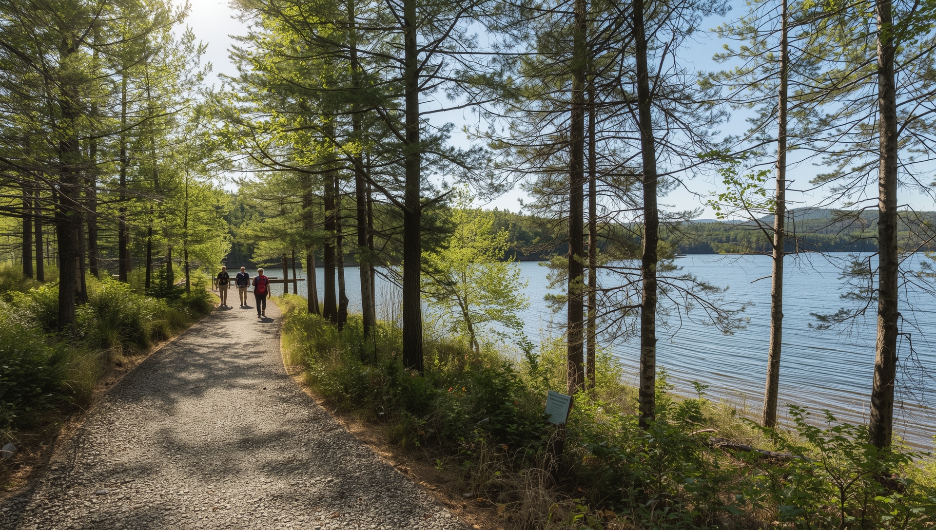 Trail conditions change with the seasons. In spring, snowmelt can leave damp patches along the western shore; waterproof shoes are helpful. Summer brings firm footing and full accessibility, while autumn paints the path in red and gold — though wet leaves can make granite sections slick. Dogs are welcome on leash, and benches appear at ideal intervals for resting or taking in the view.