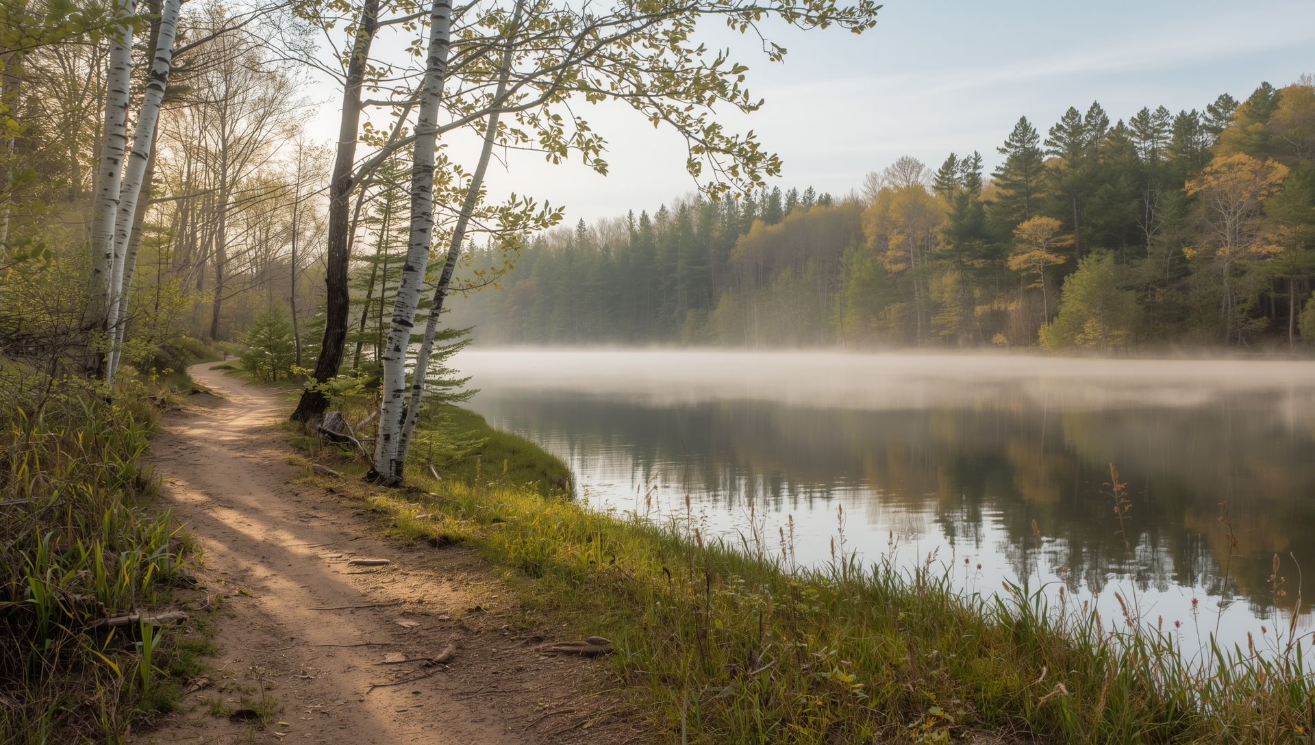 With each season, the trail reveals new rhythms. In spring, migrating songbirds return — warblers, thrushes, and sparrows — their music swelling as ice melts from the pond. Summer hums with dragonflies, bees, and the gentle splash of paddles from kayakers exploring the far edges. Autumn transforms the forest into a tapestry of copper, red, and amber, mirrored in the water below. Even in winter, when the pond lies frozen, fox tracks mark the snow and black-capped chickadees dart between bare birch branches, small sparks of life against a pale landscape.