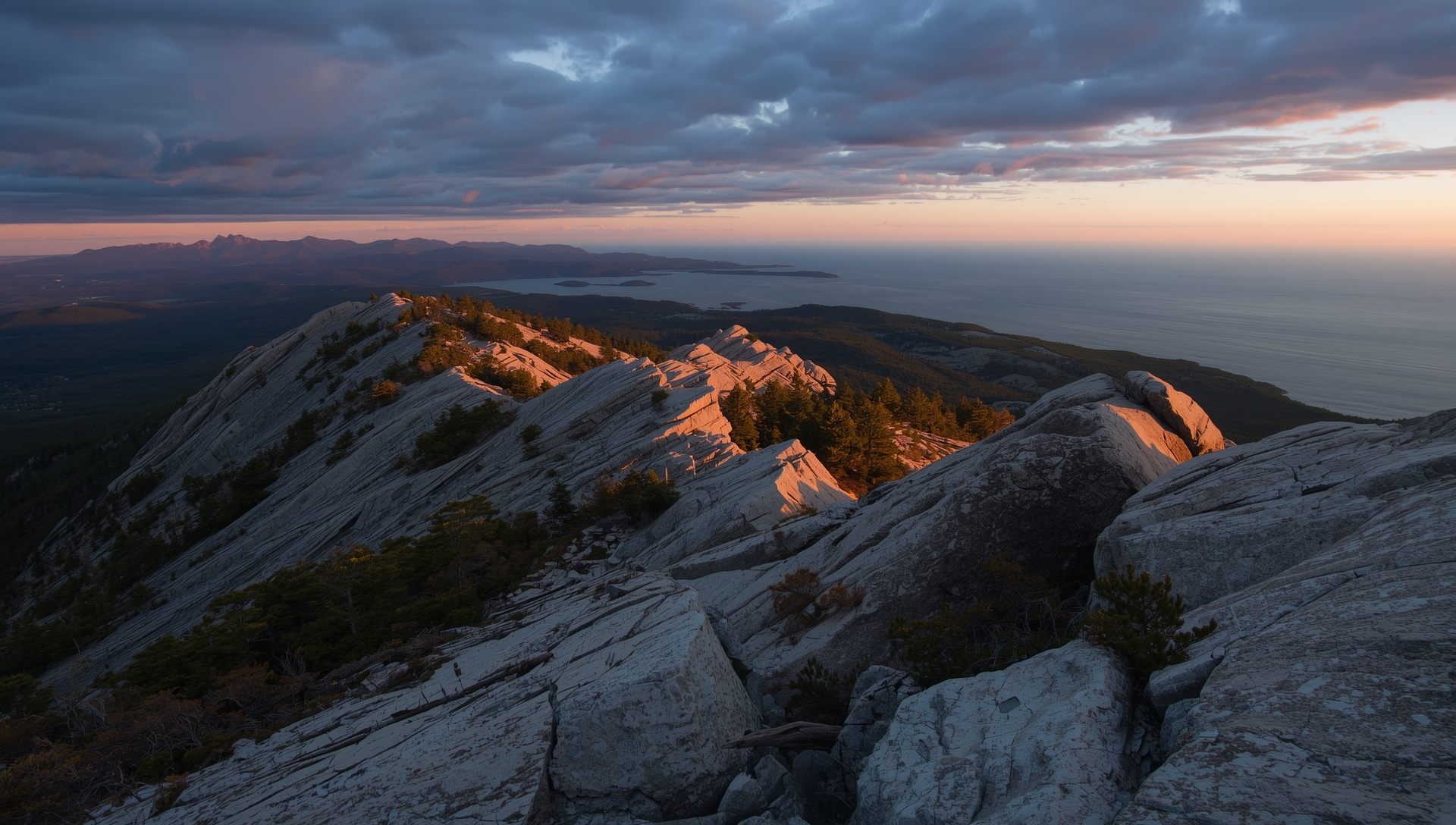 The Summit and Ridge Trails in Acadia National Park reveal a completely different side of the park — one that’s less about adrenaline and more about awe. These are the trails that lift you above the tree line, opening up the full sweep of Mount Desert Island and the Atlantic beyond. Whether you’re standing on the pink granite crown of Cadillac Mountain or tracing the quiet ridges near Beech and Bernard, the feeling is the same: space, light, and an unmistakable connection to the landscape that defines Acadia.